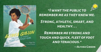‘As a child, I was often told I was “too much”: too opinionated, too headstrong, too tall, too skinny, too black, too energetic to fit in. Maybe that’s why I’ve always been fascinated by the stories of girls and women who were also told that their interests and goals made them “too much” for the society they lived in. My idols were Janet Reno, Michelle Kwan, and Dominique Dawes (not to mention Anne of Green Gables and Meg Murry)—but I wish I’d known Althea Gibson’s story…..’
